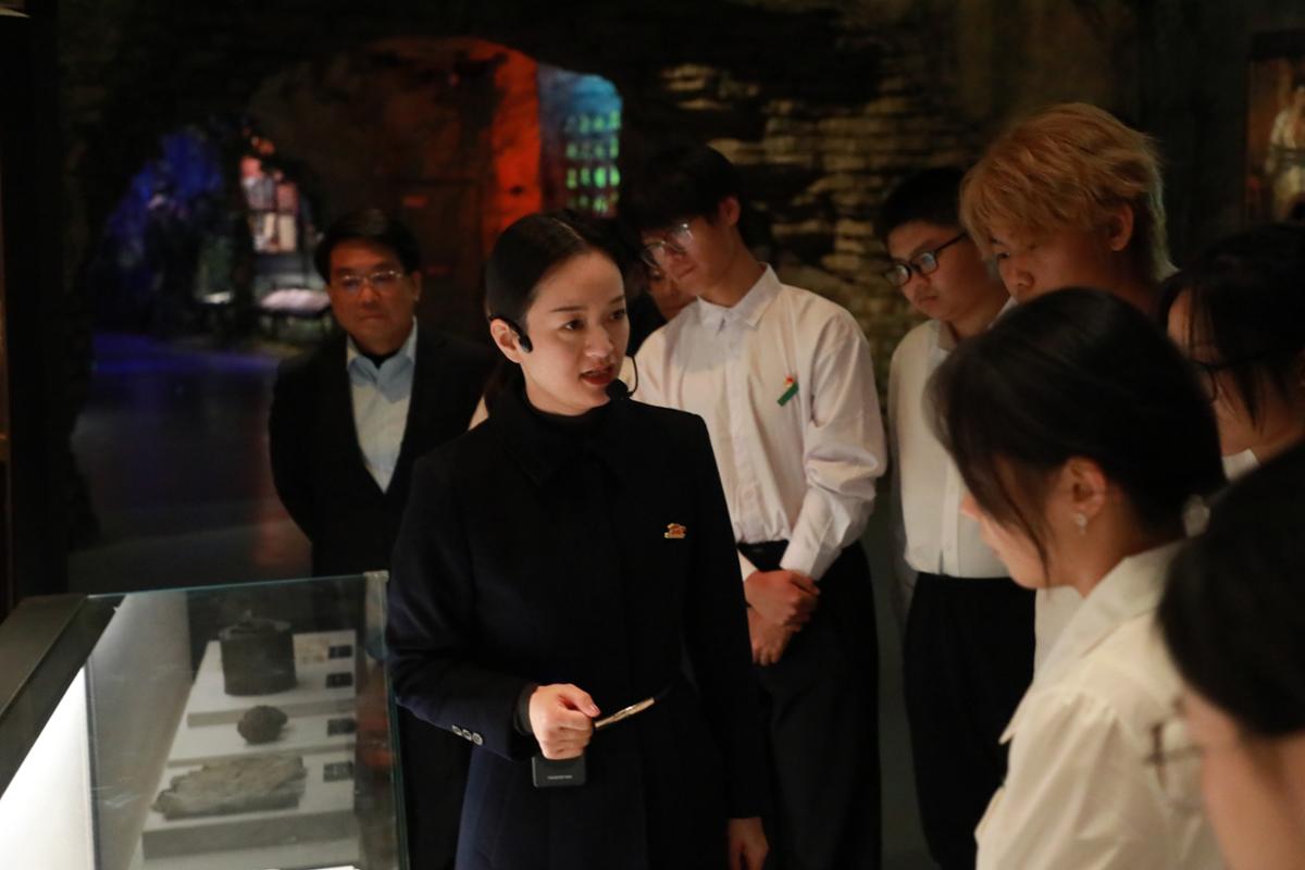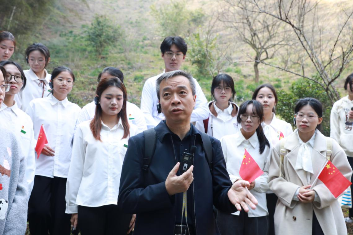 在南方三年游击战争纪念馆,讲解员邱芳围绕“南国烽烟举红旗”主题,结合珍贵革命文物,生动讲述了陈毅元帅被困梅山二十余日、于绝境中坚守信仰的斗争历程。冰冷的历史史料与炽热的革命诗篇相互印证,使师生直观感受到南方三年游击战争的艰苦卓绝与革命先辈坚如磐石的意志。