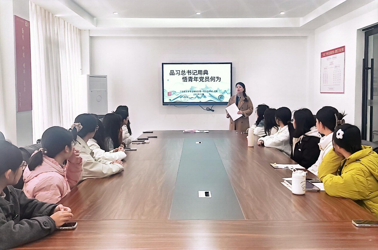 在第四季度社区微党课环节,支部书记以“品习总书记用典 悟青年党员何为”为主题进行讲授。党课聚焦“一语不能践,万卷徒空虚”“处事不以聪明为先,而以尽心为急”等经典论述,引导学生党员常怀赤子之心、践行实干之志、勇担时代之责,在具体服务与担当作为中积累经验、提升自我,真正实现从“知”到“行”的跨越,切实发挥党员的先锋模范作用。