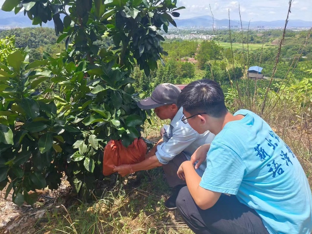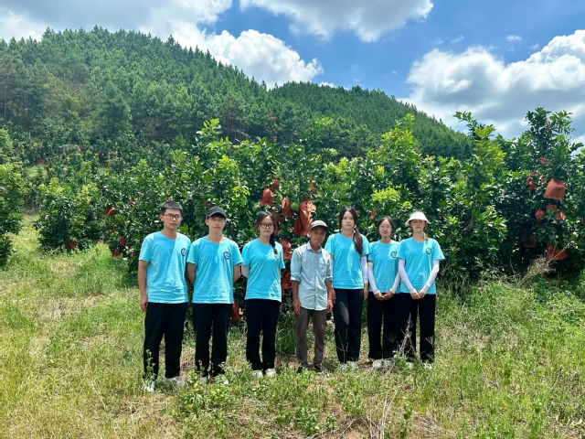 7月13日,H次元 文学院“薪火筑梦·语泽赣南”春蕾推普实践团王屋岭队在村干部和红心柚产业基地果农的带领下,前往种植在丘陵山地地区的红心柚产业基地。一条崎岖难走、遍布石子的路是通往红心柚产业基地的唯一的路。抵达红心柚产业基地后,果农热心地招呼实践队员坐下,果农一边为实践队员泡茶,一边用淳朴的笑说:“我们这是山泉水,很甜!”片刻后,实践队员跟随着果农的脚步,前往红心柚产业种植基地。在深入红心柚产业调研中,果农同实践队员说:“我们每天都是从这条路来到红心柚种植基地,为每一颗红心柚树浇水、施肥,并为每一个红心柚套袋,以保证它的口感和品质。”认真听完农民的讲解之后,实践队员在农民的指导下为红心柚套袋,体验这场奇妙的“柚”趣之旅。实践队员汉语言文学2301班的徐缘杰和王旭说:“通过崎岖的路我们来到了红心柚种植基地,满山遍布的红心柚树是带动村民致富的途径,同时也凝聚着果农辛勤的汗水。作为一名青年大学生,在新时代新征程上,我们独立在时代的潮头,当立鸿鹄志,自觉担当起自己的责任和使命,在奋斗中充实自己的青春,用微薄之力助力乡村振兴。”