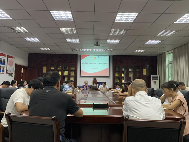 7月27日,文学院在十教113会议室召开教职工大会,专题学习贯彻党的二十届三中全会精神,学院领导及全体教职工参加。会议由学院党委书记陈康敏主持。