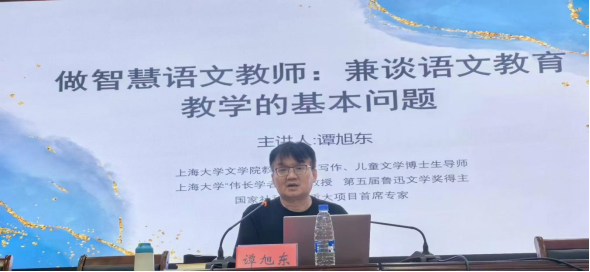 谭旭东教授在主旨报告《做智慧语文教师:兼谈语文教育教学的基本问题》中指出:语言素养和文学素养是语文教师的基本专业素养。“语文”这一名称的含义不只是“语”和“文”的加合关系,更蕴含着由“语”到“文”的关系。阅读能力的最高层次是再生文本,语文教育最重要的目标是学生写作能力的提升。