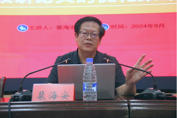 裴海安副社长在《语文教师教研论文写作问题与对策》报告中,结合最新的《学术论文编写规则》(2022年12月30日发布,2023年7月1日实施),以切片分析的方式指出教研论文包含的要素及各要素的写法要领。